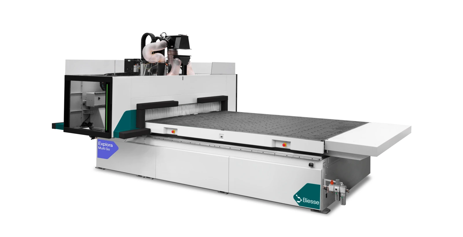 Built to last with the Rover Plast B FT. Biesse has built the Rover Plast B FT to take on ultra high production with one machine. The Rover B is set-up on a flat table design with a 5-axis, fully integrated and extremely flexible. This means if you are producing plastics along with fibers and non-ferrous or light alloy material the Rover Plast B will be able to handle an extreme workload. With the tool rack options ranging from 33 to 8 positions you can get a machine that will handle your manufacturing for years to come without needing to upgrade to keep up with the market demand. This CNC Router can even work with breathable material by holding the parts in place with a roller system making this flat table the most versatile. Optional full automated systems make it possible to produce with very limited human intervention great for taking your manufacturing to the next level